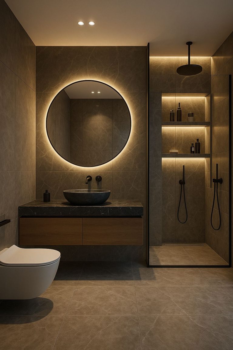 Doğru ışık kurgusu ve malzeme uyumu sayesinde, hem estetik hem de konforlu bir kullanım sunan, çağdaş çizgilere sahip bir banyo mekânı elde edilmiştir. Proje, modern yaşamın ihtiyaçlarına cevap veren, uzun ömürlü ve şık bir iç mekân çözümü olarak tamamlanmıştır.